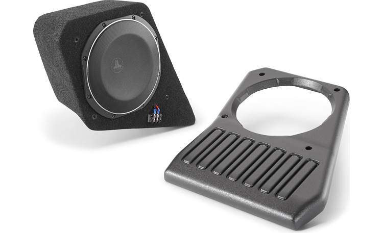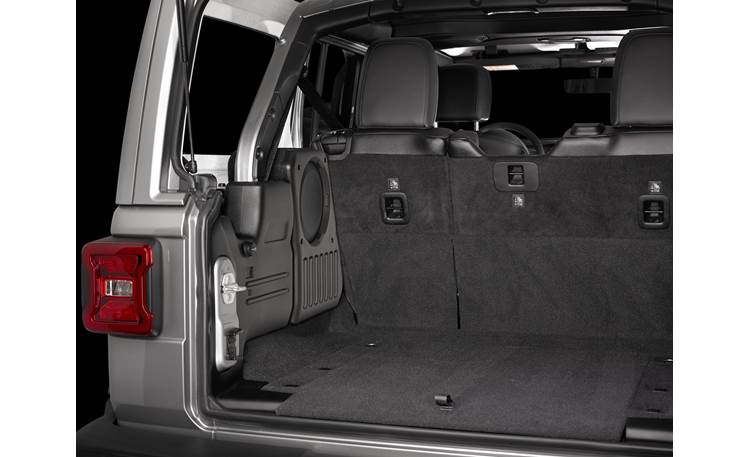 JL Audio Stealthbox® Black custom-fit fiberglass enclosure with one 10TW1 4-ohm subwoofer — fits 2018-up Jeep Wrangler JL Unlimited